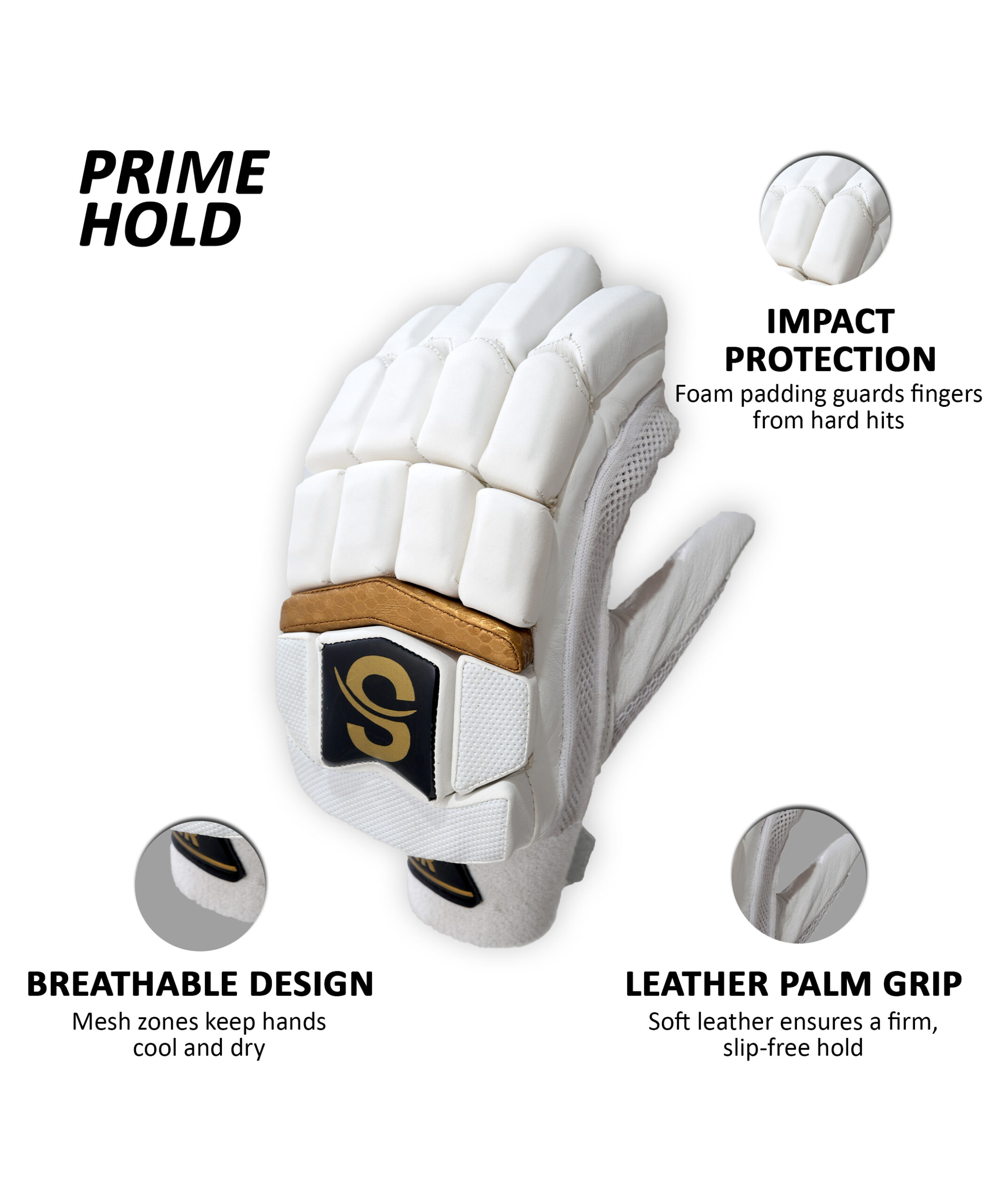 These white cricket batting gloves are built for confident stroke play—featuring enhanced grip,