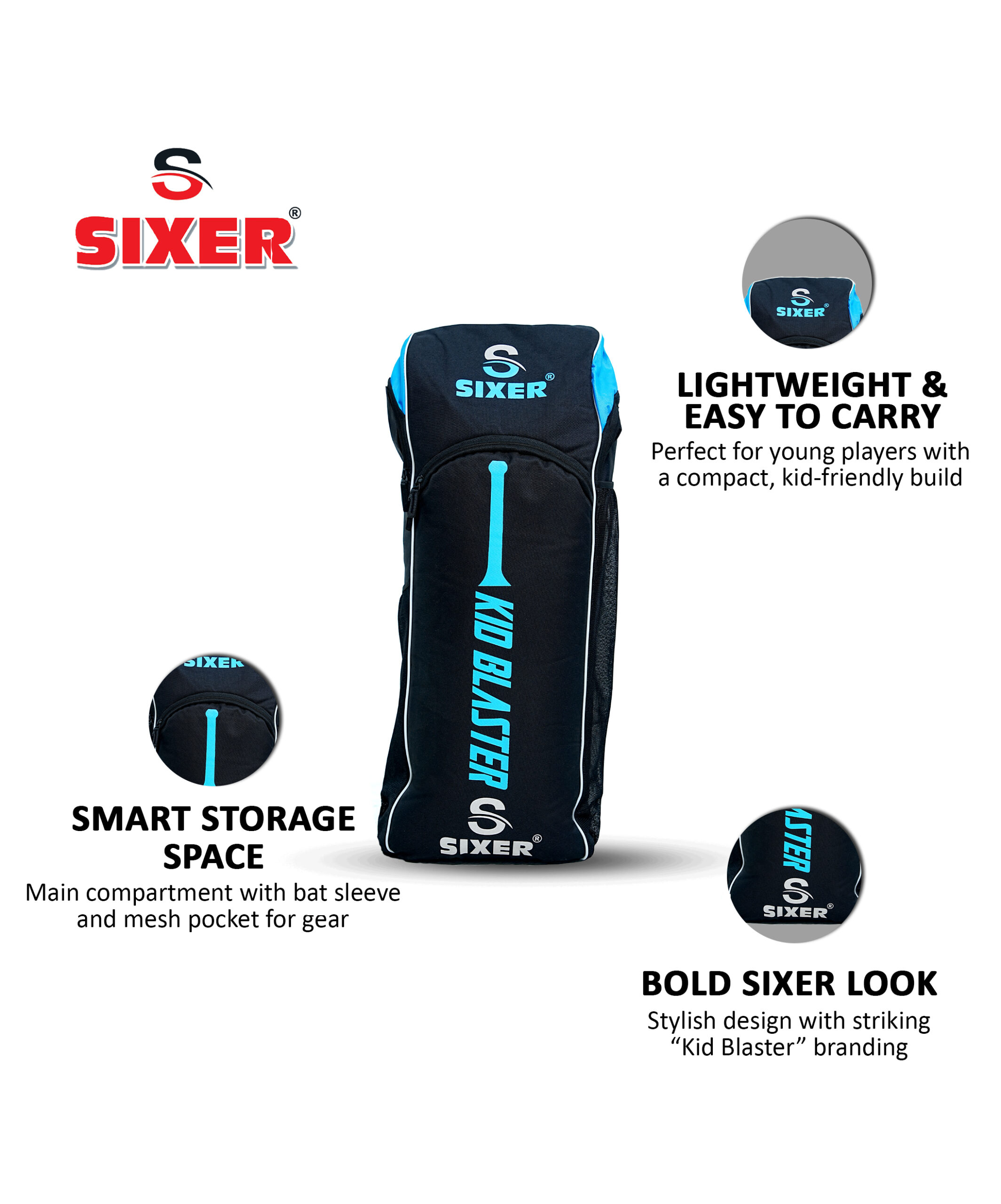 The Kid Blaster Neon Blue Kit Bag is the perfect first kit bag for young cricket lovers who are just starting their journey into the world of cricket. Designed with both functionality and fun in mind, this bag makes carrying cricket gear exciting, easy, and organized.