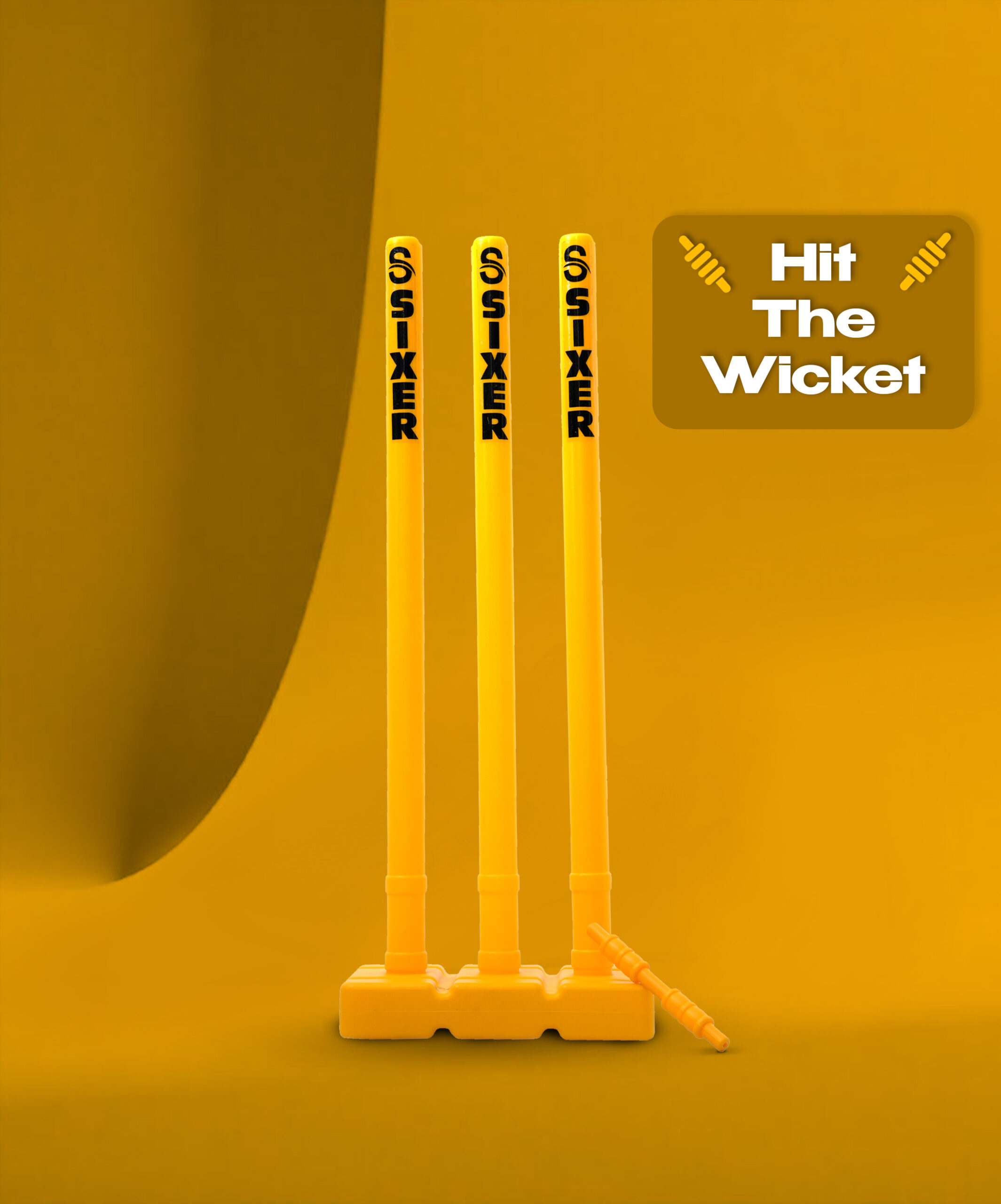 Lightweight PVC Cricket Wicket Set – 3 Stumps, 2 Bails & Base – Yellow, Durable for All Ages