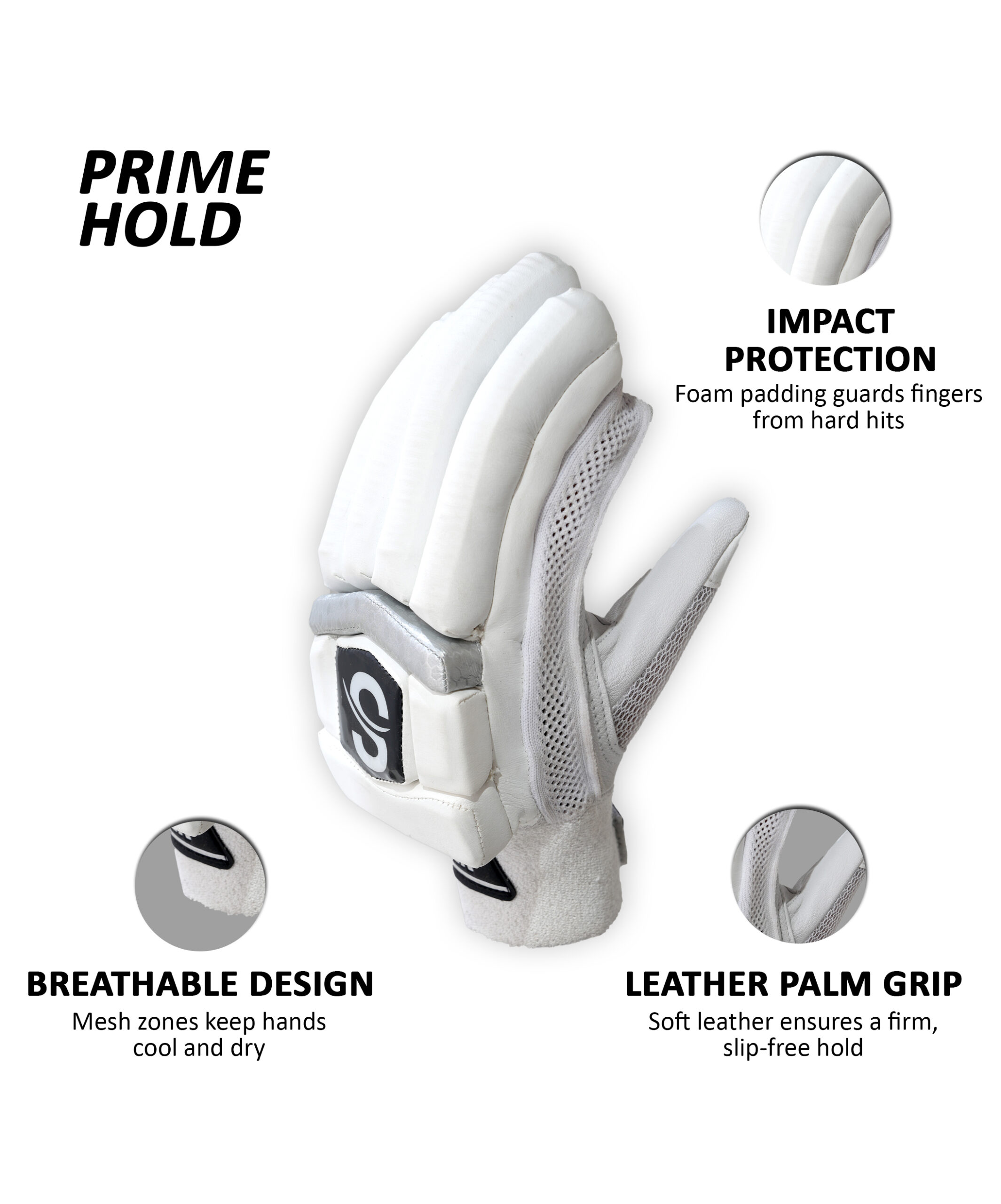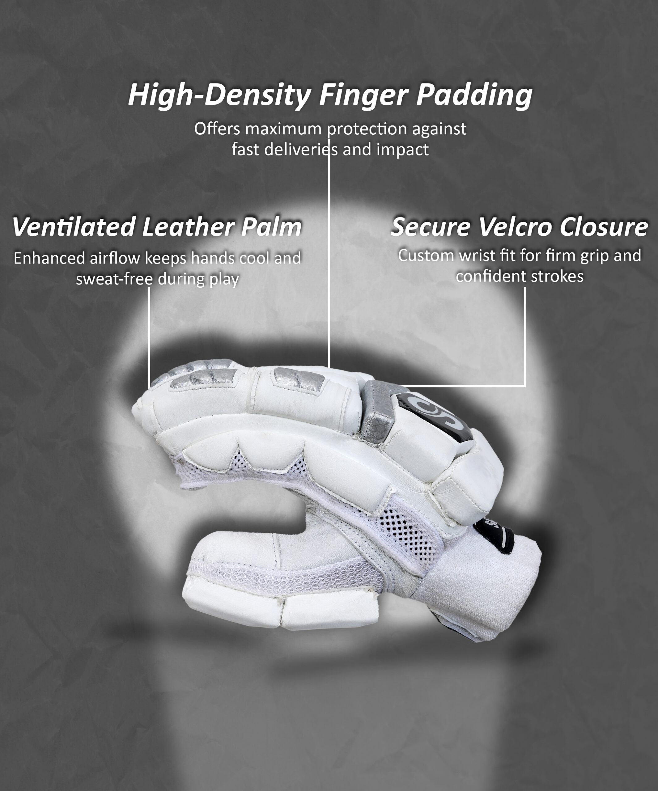 support your hands through every inning. The soft inner lining and ventilated construction allow for long-lasting breathability, while the outer padding ensures full-impact protection from fast bowlers.