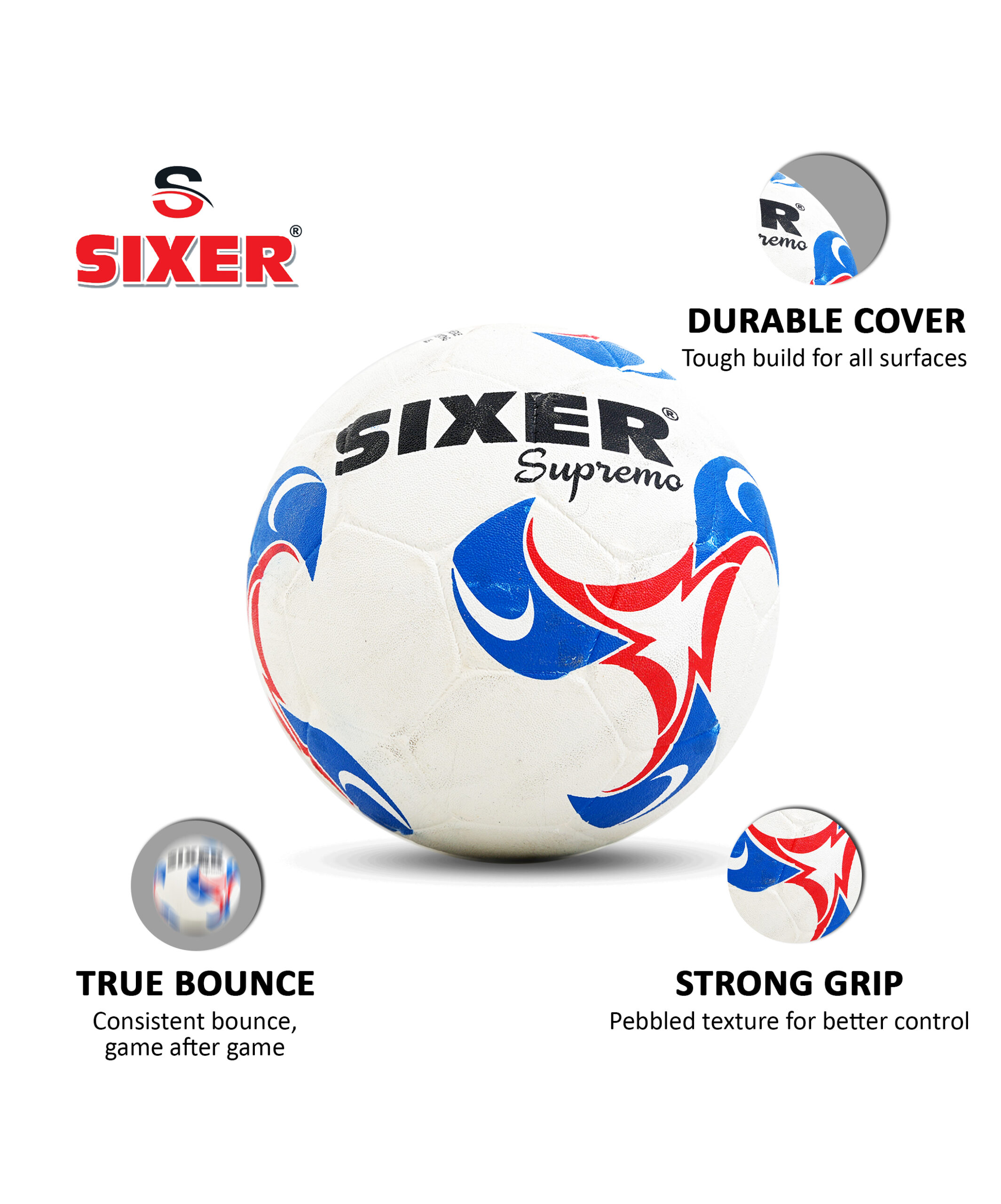 Crafted for powerful strikes and smooth play, the Supremo Football offers excellent grip, bounce, and shape retention—built to perform in all weather conditions.
